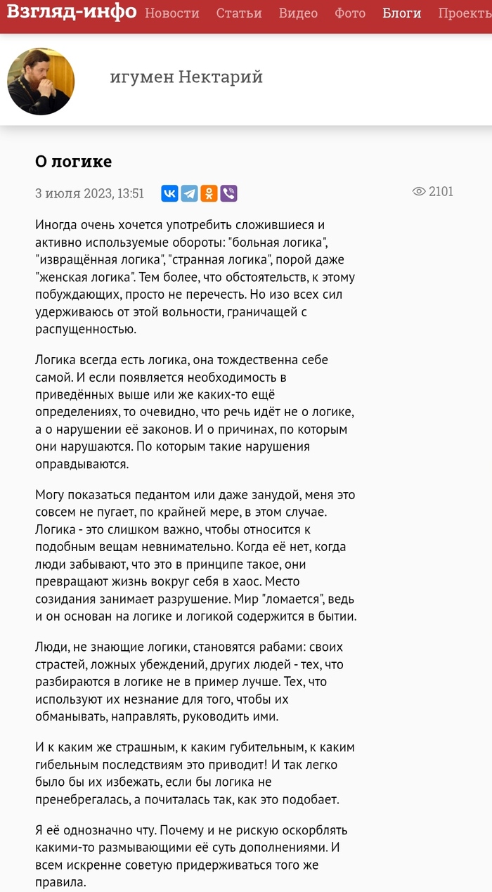 Как этот пост ("О логике" https://www.vzsar.ru/blogs/5544) игумена Нектария и его мнение в нём соотносится с его постом о первичности слова ("Не замечать очевидного" https://www.vzsar.ru/blogs/5466)?