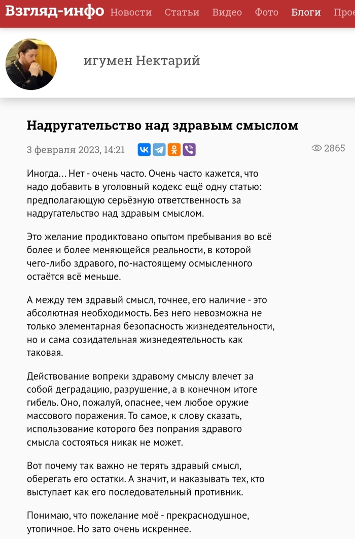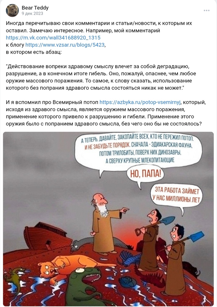 И не могу не привести комментарий Bear Teddy https://m.vk.com/wall341688920_2022 на пост игумена Нектария "Надругательство над здравым смыслом"