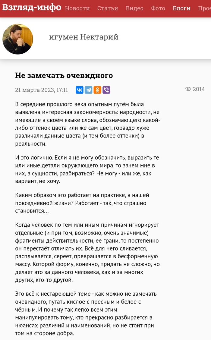 Игумен Нектарий, судя по этому тексту, использует инструменты той самой силы, против которой он, якобы, предостерегает. Он не освобождает людей от манипуляций — он пытается стать для них единственным и главным манипулятором, облаченным в рясу.
