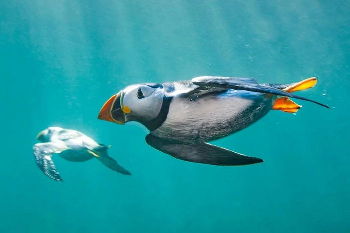 Помимо того, что они далеко и хорошо летают, правда в силу внешних особенностей тела не очень манёвренны, тупики отлично плавают и ныряют. Иногда даже кажется, что под водой они чувствуют себя лучше, чем в воздухе. Их пингвинообразное тело, крылья и перепончатые лапы как раз и созданы для подводной рыбалки.