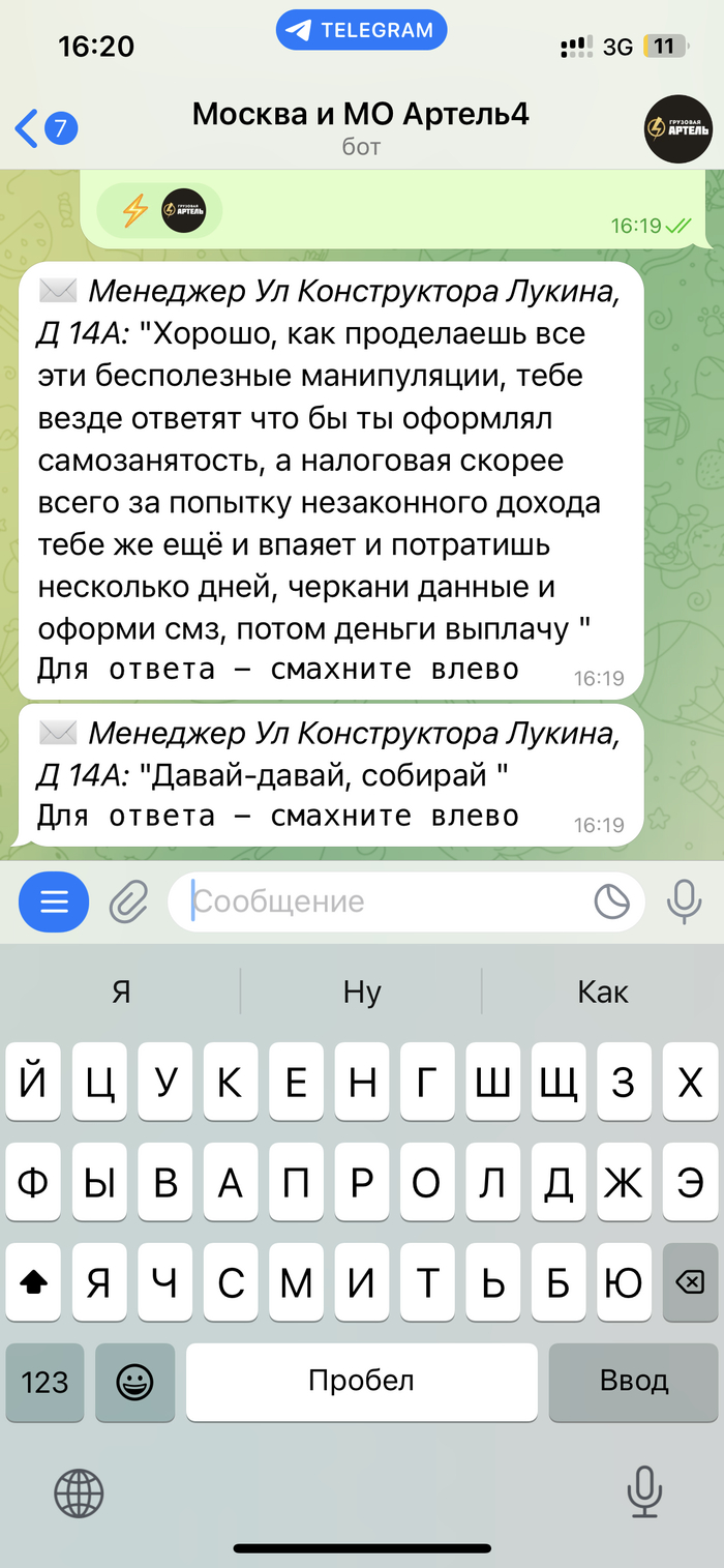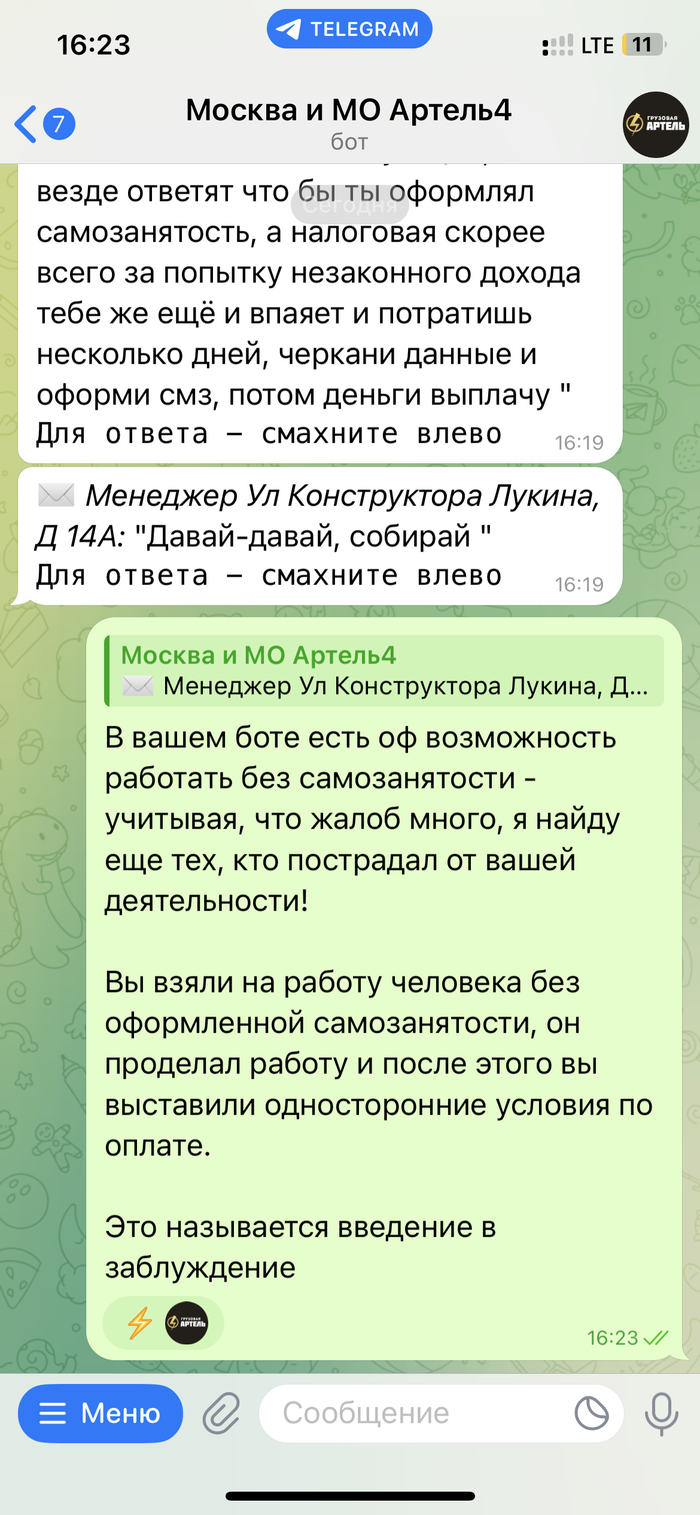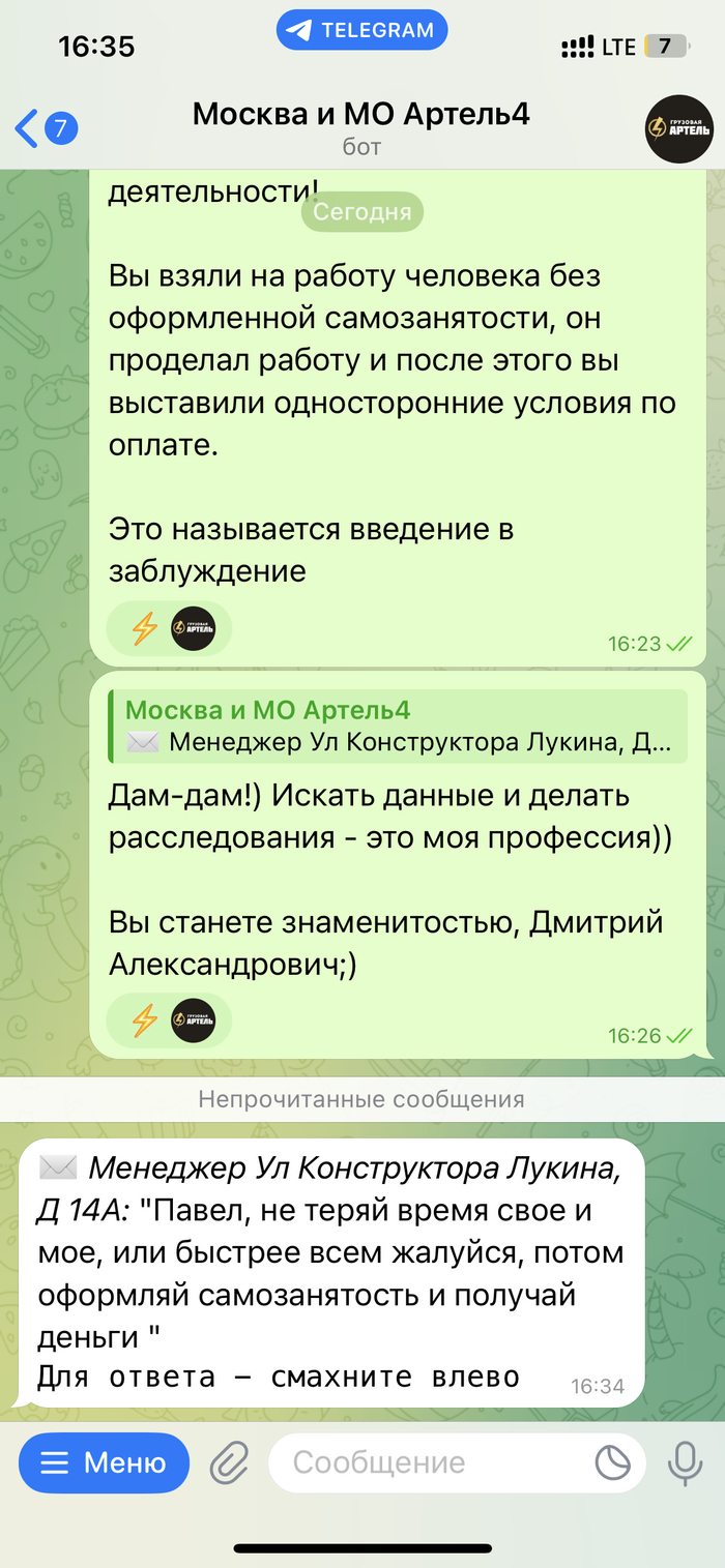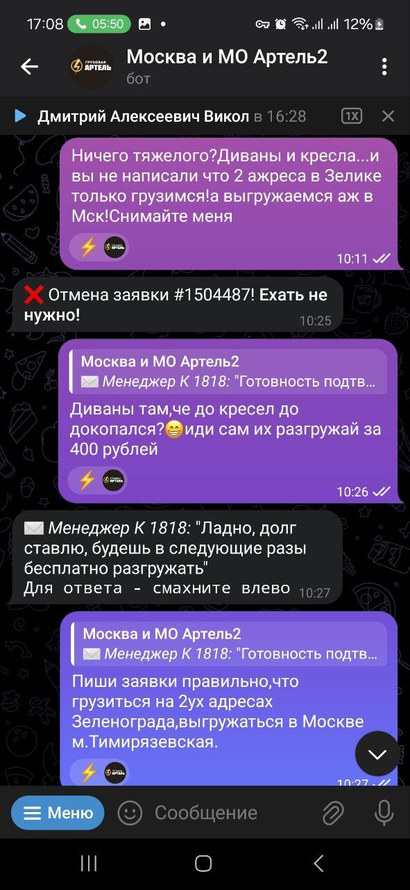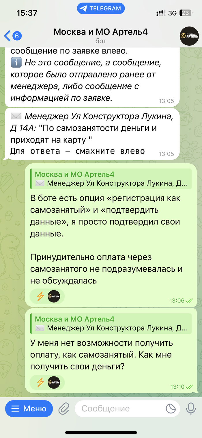 Так вот: стали Зеленоградские грузчики замечать неладное - при оформлении заявки пишется один объем работ, а по факту оказывается совершенно другой; при выплатах по факту совершенных работ процесс получения денежных средств усложняется и удлиняется: то не те данные карты, то вы обязаны быть самозанятым, то вдруг штрафы с потолка появляются…