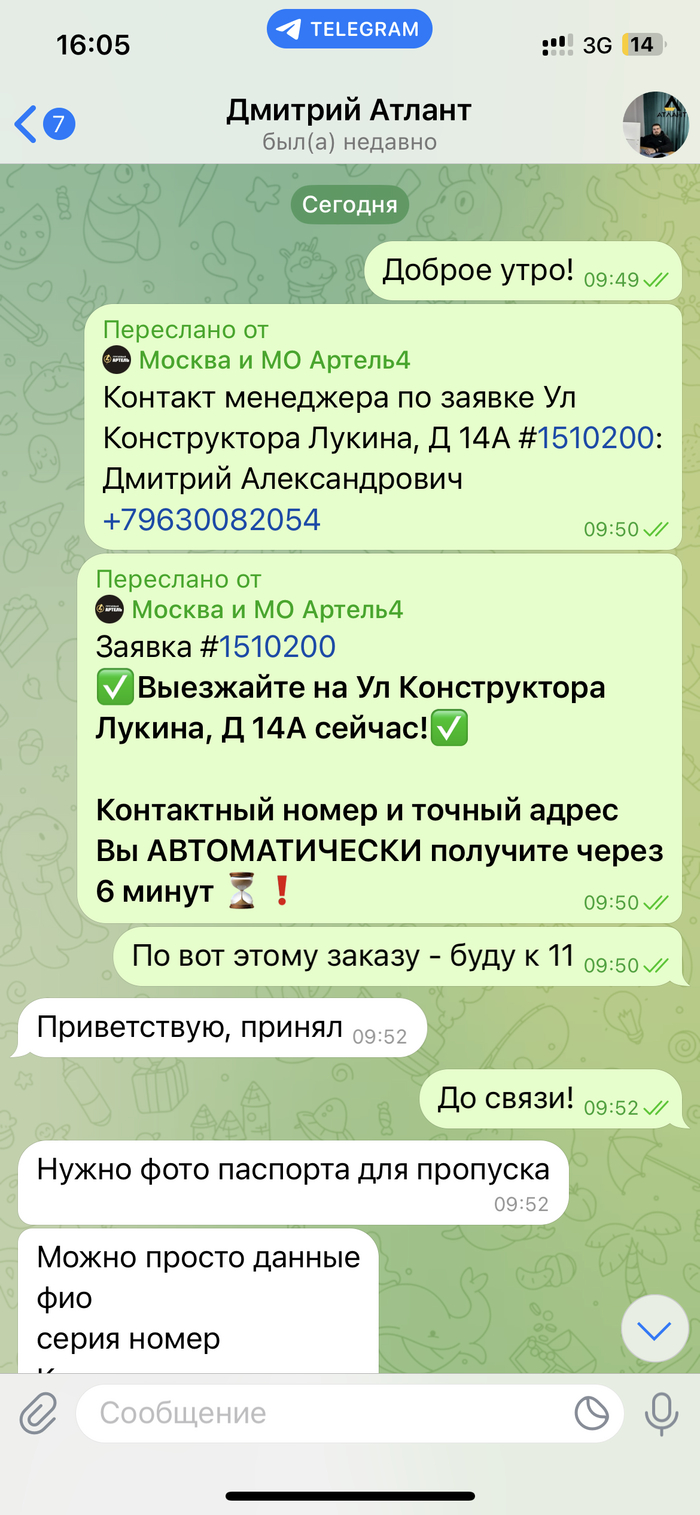 «Контакт менеджера по заявке Ул Конструктора Лукина, Д 14А #1510200: