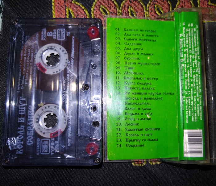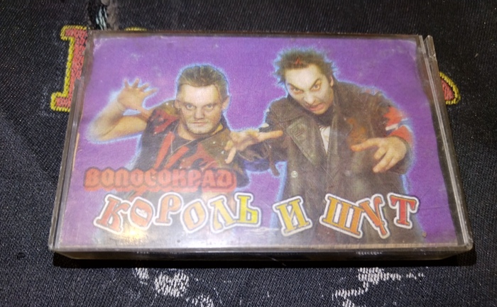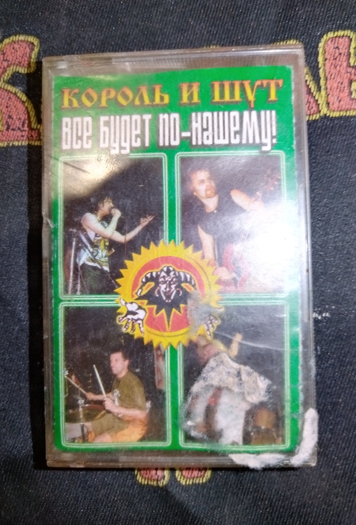 Конечно диск был, а вот послушать дома было не на чем, был только кассетный магнитофон, поэтому слушать его ходили к соседу, насколько помню было 2 диска, один с рок музыкой, а второй был с программой для создания своей музыки. И вот среди исполнителей была группа, с тогда казалось бы смешным названием, Король и Шут с песней Генрих и Смерть, она мне очень понравилась и я её быстро выучил наизусть. Чуть позже наступили летние каникулы и меня отвезли к бабушке в посёлок. Бабушка мне часто давала карманные деньги, в отличии от родителей и вот на них я приобрел свою первую аудиокассету КиШа, вот она ниже, фото моё.