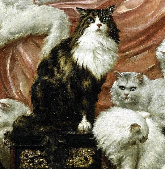 И кто же рискнул заказать изображение своих любимых котиков художнику, который до этого никогда их не рисовал? Этой смелой женщиной оказалась американка Кейт Бердсолл Джонсон (Kate Birdsall Johnson), счастливая обладательница целого семейства ангорских красавцев, весьма состоятельная женщина. Кто бы сомневался, позволить себе содержать 42 котика могут не только лишь все.
