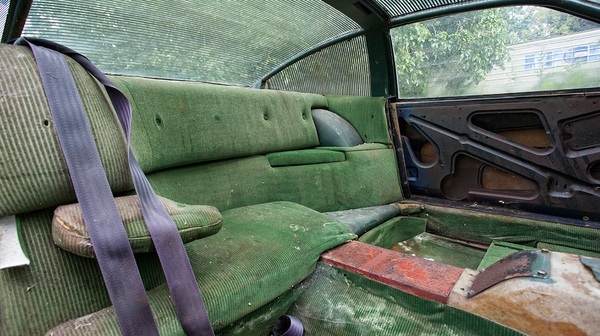 В период 1970-х годов зеленый интерьер из вельвета был достаточно популярен, отлично сохранился и нуждается в хорошей чистке.