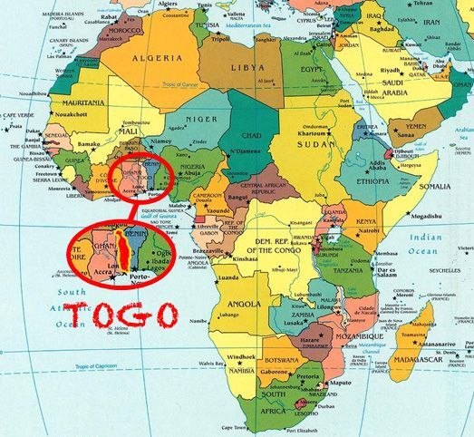2. Столица Того, Ломе, уникальна тем, что расположена прямо на границе с Ганой. Её центральный проспект является одновременно и пограничным пунктом.