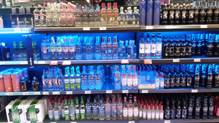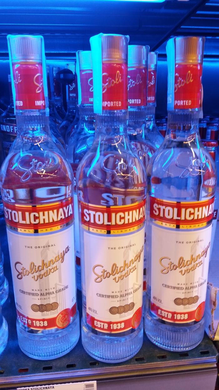 Единственная лицензионная русская водка там - "Столичная" (сделана в России, а по бутылкам разлита в Латвии). Раньше "Московская особая" тоже продавалась оригинальная, теперь, под шумок, с похожей этикеткой продают от левого производителя. Кстати, в таком же магазине один раз купил странный "Абсолют": без дозатора, и со вкусом "Распутина". По стопке выпили, а остальное вылили в раковину (ну его нафиг палёнку пить).