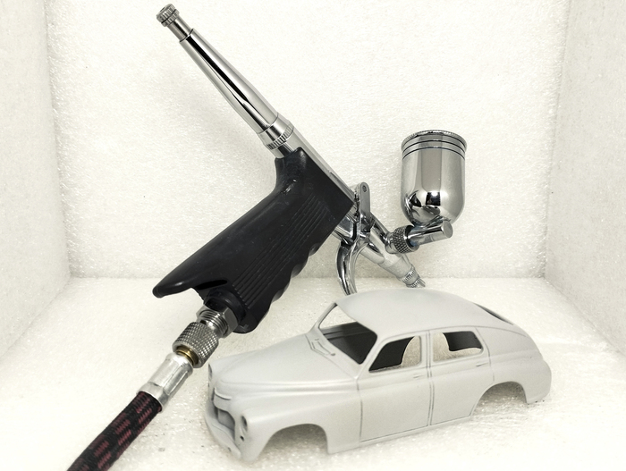 Следующим шагом, подготовленный кузов был обезжирен и покрыт серым финишным грунтом от фирмы TAMIYA.
