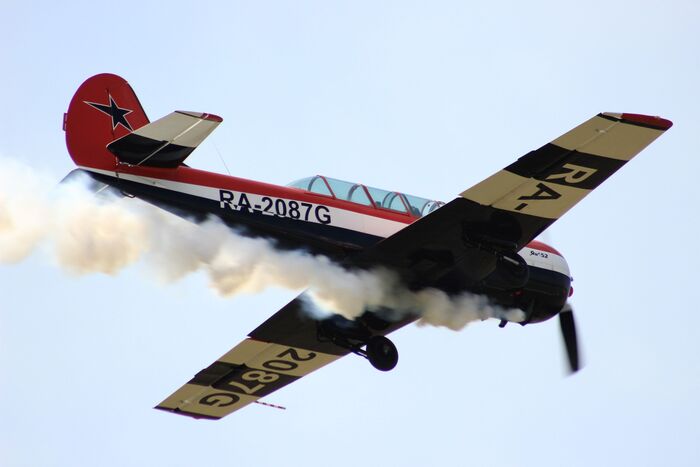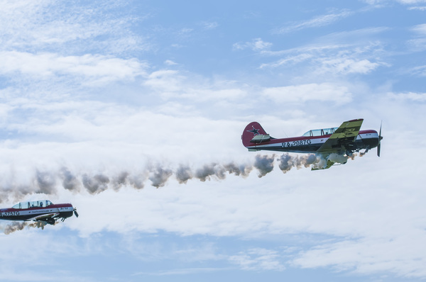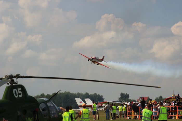 ... а вот и следующее выступление - пилотажная группа "Барсы" из Сургута. Группа выступает на самолетах Як-52 и состоит, в основном, из девушек.