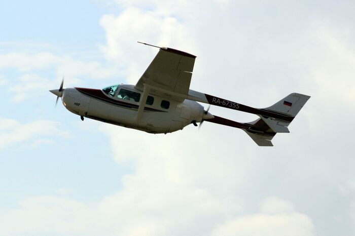 Паузу перед выступлением следующей группы заполняет "тяни-толкай" Cessna 336