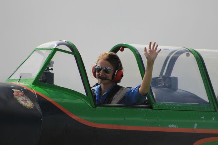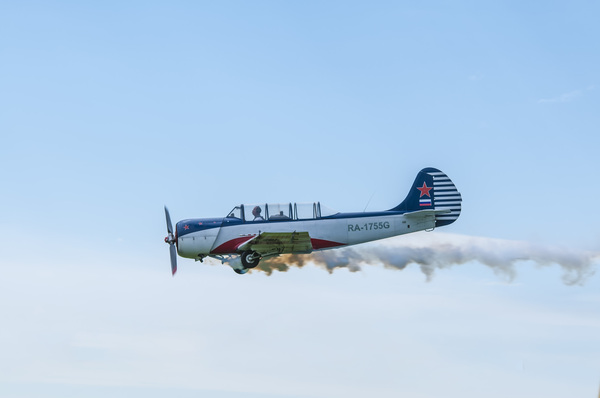 Одиночный пилотаж на Як-52 демонстрирует воспитанница аэродрома Мочище Екатерина Антонова.