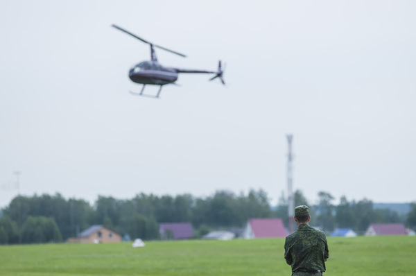 Самолёт, тем временем, куда-то улетел, но вместо него в небо поднялся небольшой вертолёт.