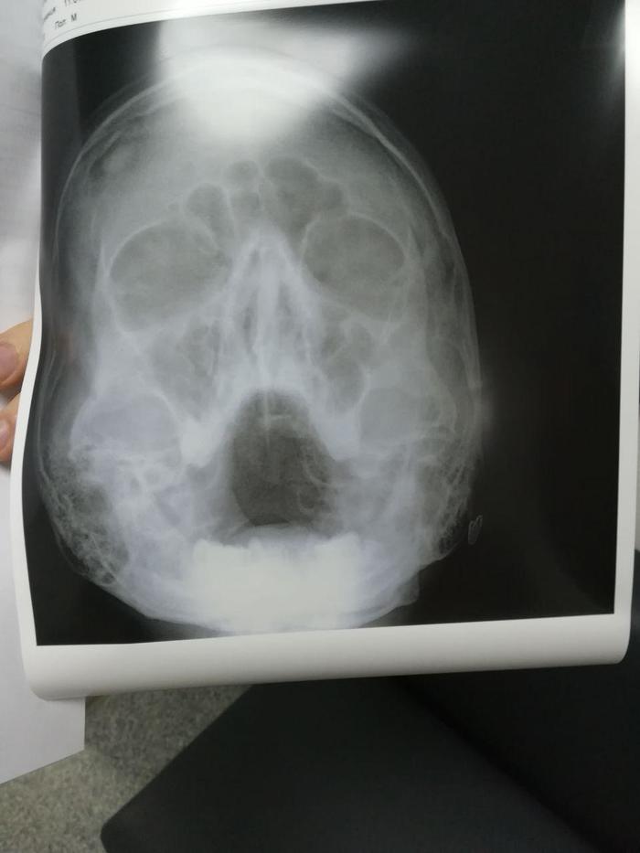 -Придаточные пазухи носа. Это рентген с открытым ртом и лицом, прижатым к экрану. Вот он я: