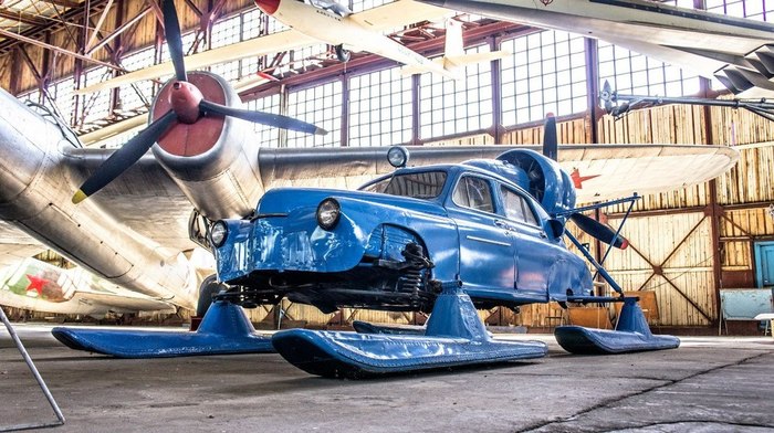 Этот экспонат всегда вызывает острую заинтересованность посетителей ЦМ ВВС. Автомобиль-аэросани «Север-2» был разработан в вертолётном КБ Н.И.Камова в 1959 году: серийную «Победу» установили на лыжи, оборудовали воздушным винтом и авиационным мотором АИ-14 мощностью 260 л.с., превратив её таким образом в быстроходный транспорт, который идеально подходил для зимнего бездорожья в малоосвоенных районах Сибири, Дальнего Востока и Казахстана.