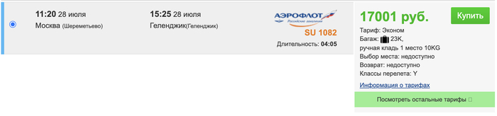 Нажимаем её и получаем билеты по этому же направлению по цене в 2 раза дешевле, так еще и с багажом: