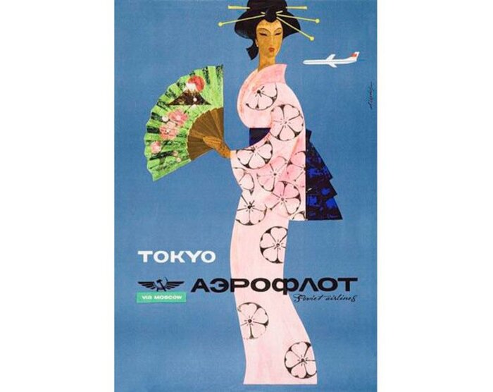 Автор плакатов - Асерьянц Виктор Александрович (1921–2001), в 60-е годы художник создал замечательную серию рекламных плакатов для международных линий Аэрофлота «Via Moscow. Soviet airlines» («ARABIAN», «BERLIN», «DJAKARTA», «CAIRO», «DELHI», «LONDON»).