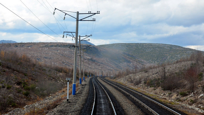 Перевал Мурурин. На этой высоте сопки уже почти лысые, без особой растительности. Ну а уклоны Муруринского перевала очень серьёзные. Грузовые поезда тут идут на подьём с подталкивающими локомотивами, а лидирующие - обычно трехсекционные тепловозы.