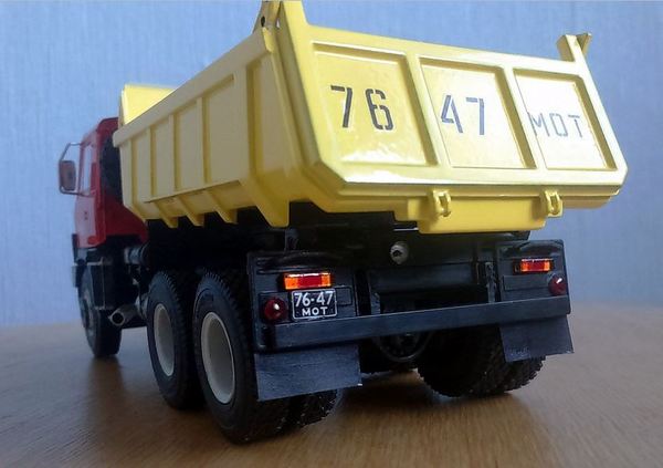 Кит "AVD", грунт "Кудо", окраска кабины и кузова эмалью "Кудо", китовая светотехника окрашена лаками "Тамия" + фары "ТриА". Поставлен на учет, приписан к АТП. Модель сложная в сборке.