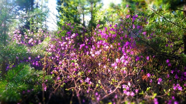 Весной в зелень тайги вклиниваются розовые пряди – цветет багульник.
