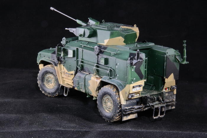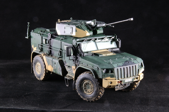 Первая машина получила целый ассортимент разных «стволов». В двух независимых боевых модулях разместили по 30-мм пушке 2А72 и спаренному 7,62-мм пулемету ПКТ. Кроме того, на правой «башенке» разместили установку для двух ракет ПТРК «Конкурс» или «Корнет», готовых к выстрелу. Пусковая была закрыта противопульной броней.