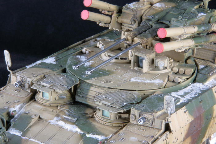 Но это было еще не все: за основными модулями на люке командира расположили установку под пулемет (7,62 или 12,7 мм), в надгусеничных полках — по автоматическому гранатомету или пулемету.