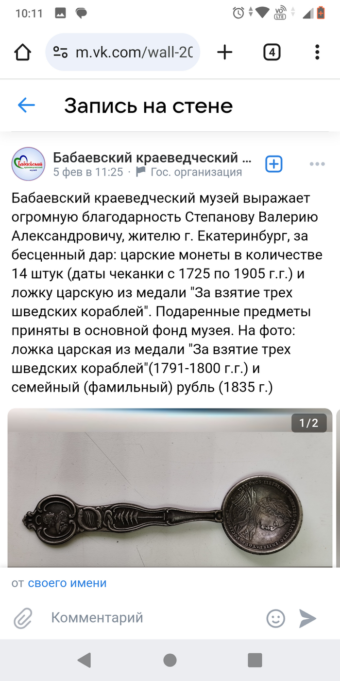 Попался пост главы района, о пополнении местного музея. Думаю ну шутка же!