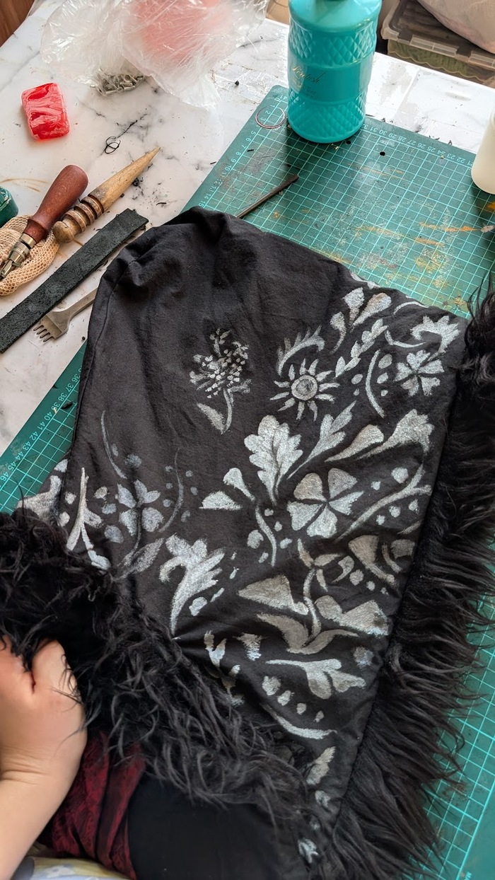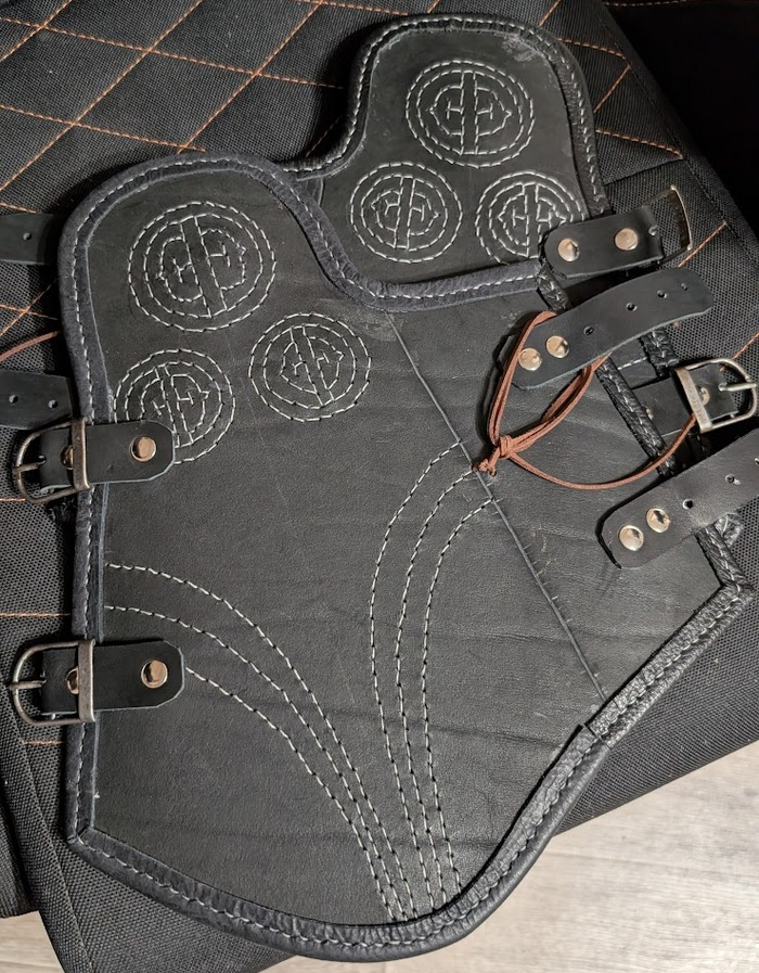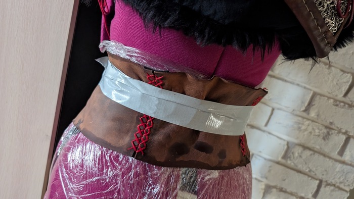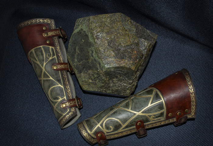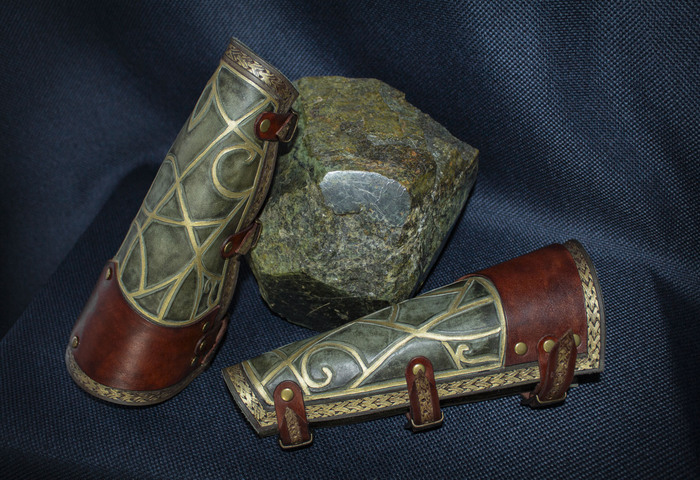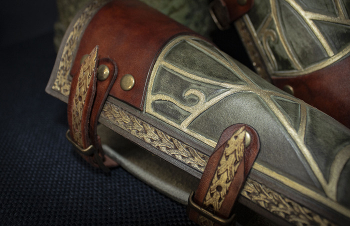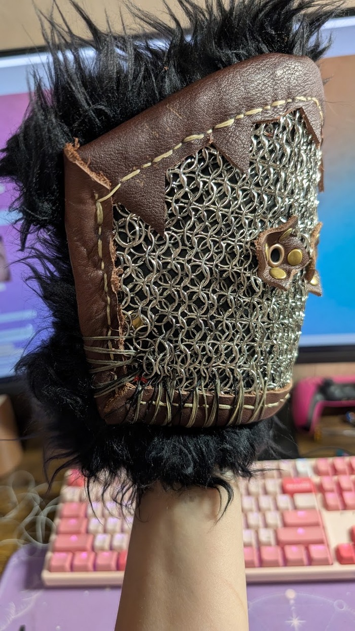 Наручи тоже делались из плотной кожи, сначала было проклято все на свете с процессом рассматривания, потом было проклято все во время пробивки(бонусом легкий хейт от соседний за пробойники). Вообще я рассчитывала дошивать их в поезде по дороге на фестиваль, но мы всем купе опоздали, взяли билеты ночью на самолёт, поэтому их я дошила дома с большим комфортом. Они немного ограничивают движение кистей рук, но хорошо защищают от постука.