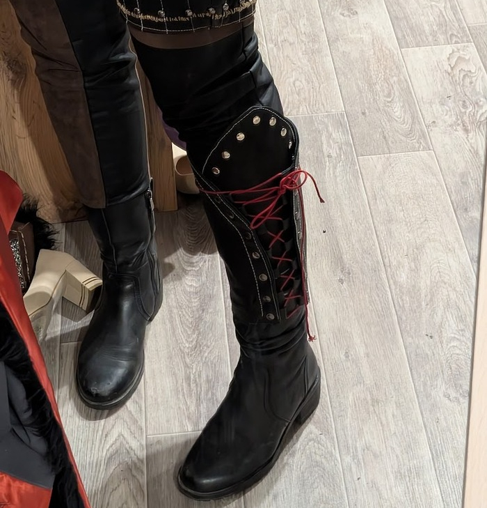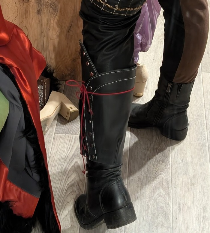 Как сделать обувь: шаг первый возьмите обувь. Для Цири я удлинила кожей подходящие сапоги, сделала эту деталь разборной и на шнуровке