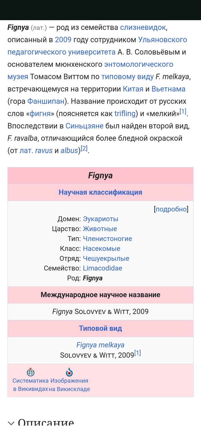 Fignya melkaya — вид бабочек рода Fignya семейства слизневидок, описанный в 2009 году сотрудником Ульяновского педагогического университета А. В. Соловьёвым и основателем мюнхенского энтомологического музея Томасом Виттом. Типовой вид рода. Встречается на территории Китая и Вьетнама (гора Фаншипан). Название происходит от русских слов «фигня» (поясняется как trifling) и «мелкий». Впоследствии в Синьцзяне был найден второй вид, F. ravalba, отличающийся более бледной окраской (от лат. ravus и albus).