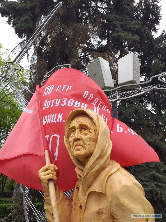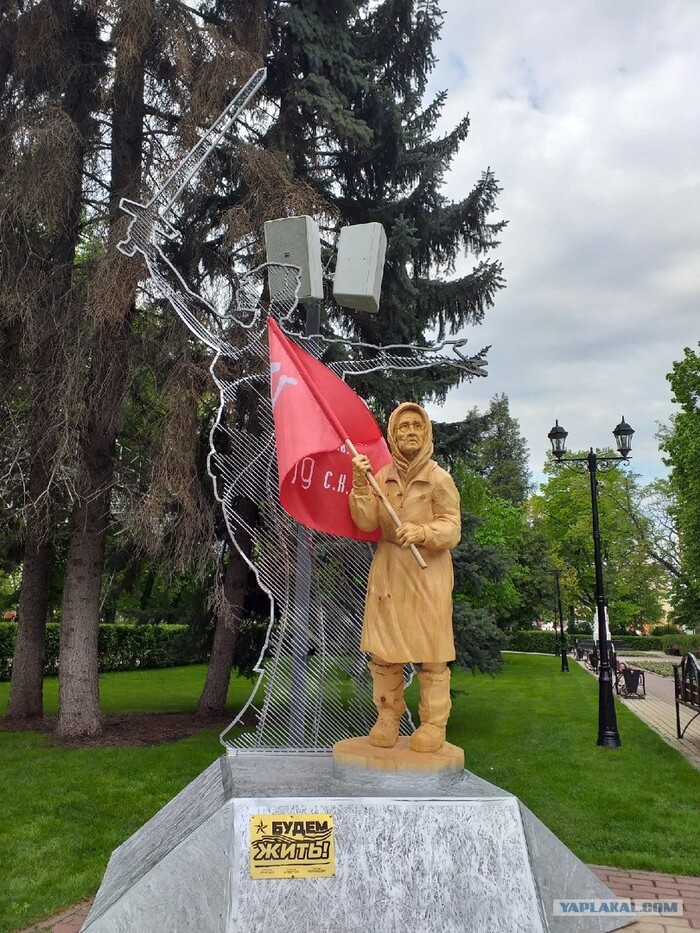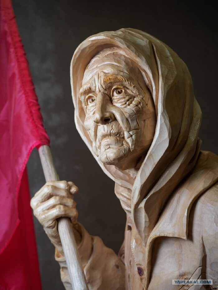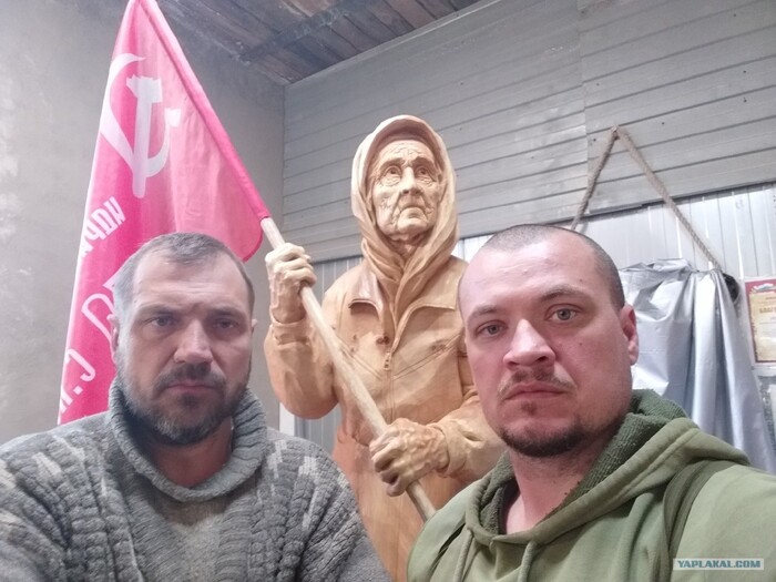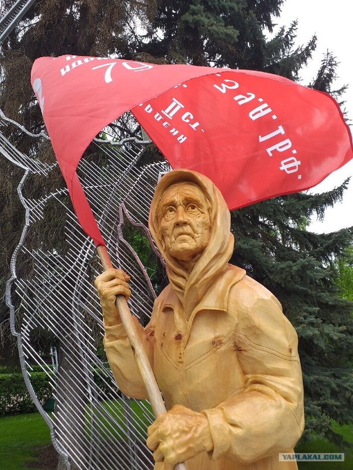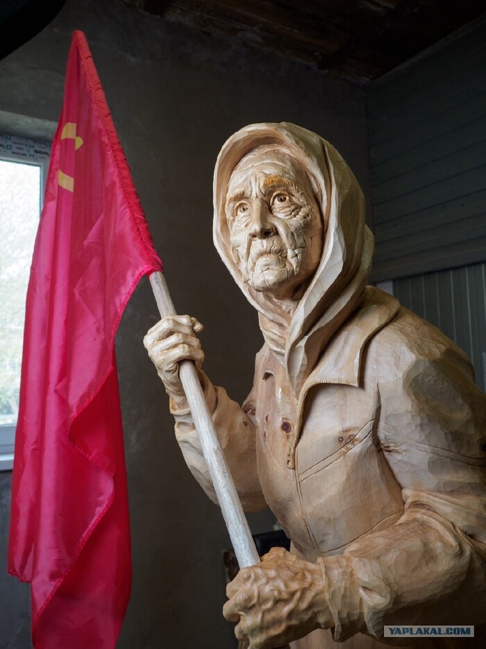 Наша Бабушка тоже в плену. В отличие от солдат и офицеров ВСУ, она не пытается всеми силами вымолить пощаду и показать лояльность своим "спасителям". И потому мы ей также должны воздать по ее поступкам и заслугам. Она защитила Флаг,за который воевали ее родители. Она не отреклась от него и в плену. Она - наша Бабушка. Ее мужество и стойкость - пример для нас. Именно это я хочу сказать своей скульптурой.