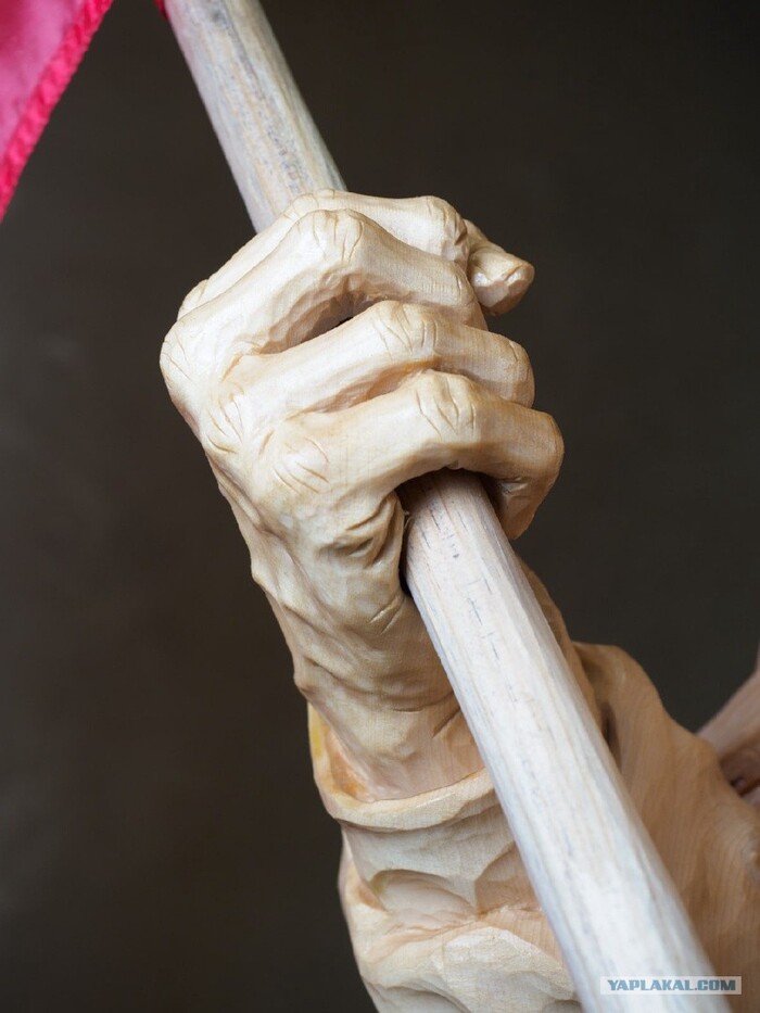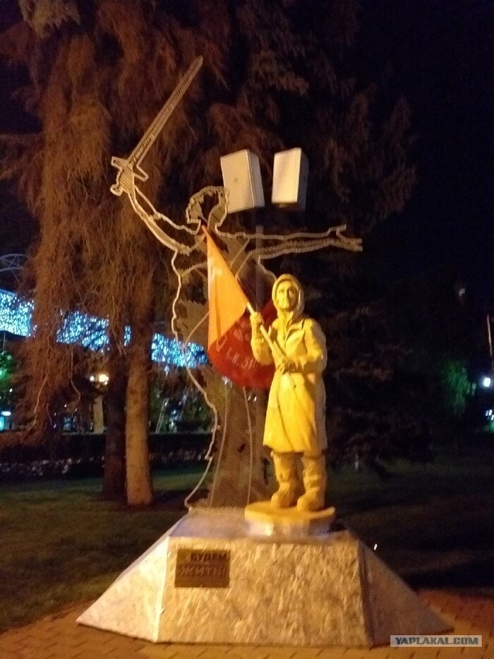 Есть какая-то грань, которую не пощупать и не описать. Вообще много неуловимого. Когда полотнище становится Знаменем? В руках у нашей скульптуры копия Знамени Победы, которое было установлено над Рейхстагом в победном 45-м. Но эта "копия" развевалась в боях за Мариуполь и Волноваху в руках бойцов легендарной на Донбассе Шахтерской дивизии.