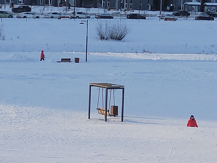 Съездили, покатались. И правда, горки неплохие. Народу катается много. И на ледянках, и на бубликах, и на снегокатах. Есть даже аттракцион на "банане" по снегу. Правда, на фанерках и на картонках, как в нашем детстве, никого не увидел.