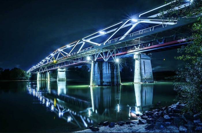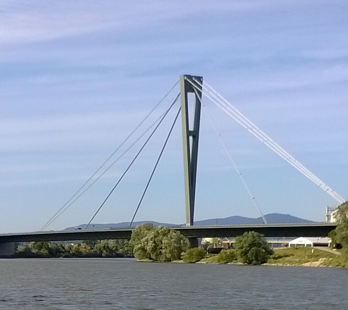 Пешеходный мост через Дунай. Позади него - ж/д мост.