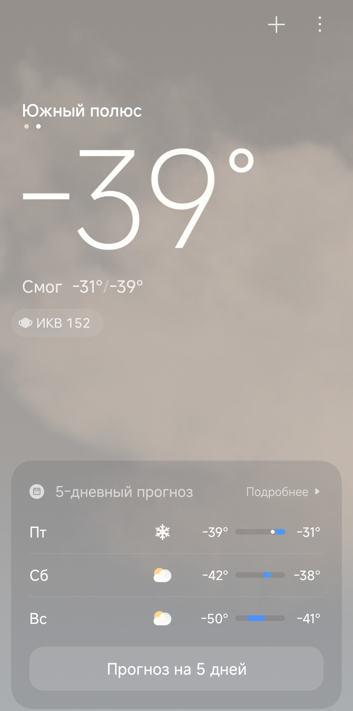 У меня в приложении "погода" на телефоне вбит южный полюс земли ( просто интересно иногда глянуть какая там температура) :)