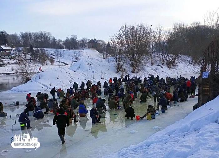 «Таскали пакеты с рыбой в тачки». Около ста рыбаков собралось на маленьком «ледяном пятачке» на Немане⁠⁠