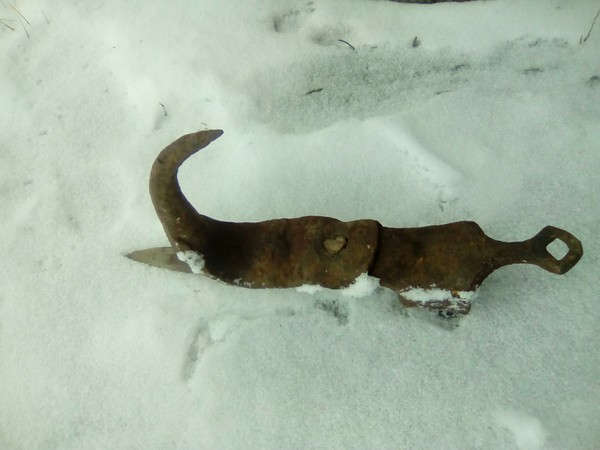 Получилась классная штука наподобие клевеца. Служит для втыкания в чурки и небольшие бревна для перетаскивания волоком по земле.