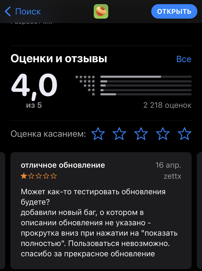 Вишенкой на торте полный игнор администрации замечаний в AppStore на этот счёт.