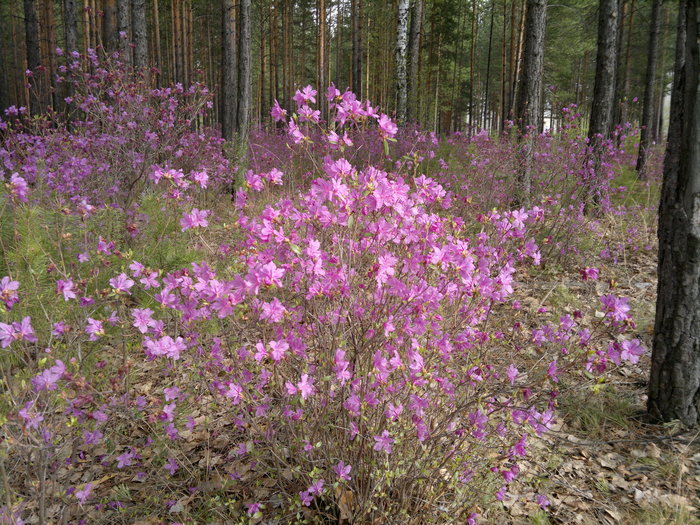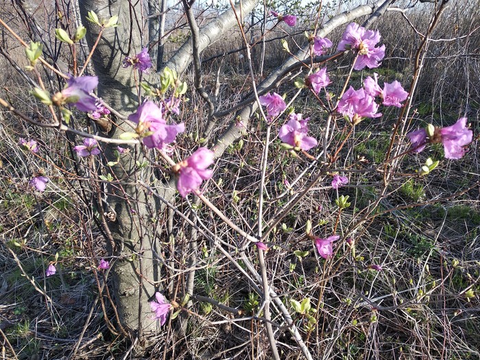 Через минуту этого дела поворачиваю голову - багульник. И ещё куст. А вон ещё. И цветочки.