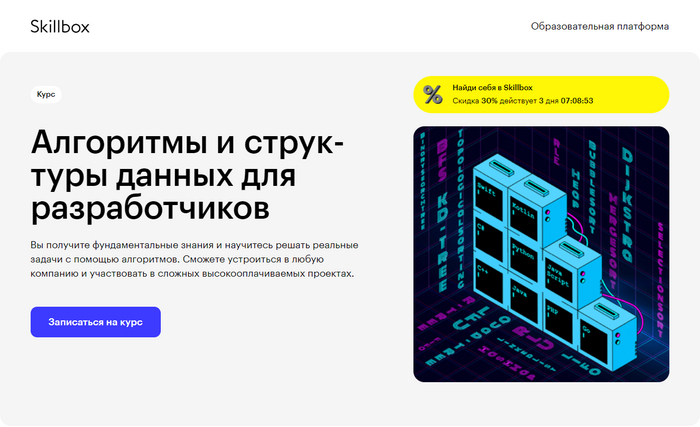 2. Курс «Алгоритмы и структуры данных для разработчиков» от Skillbox