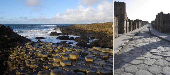 Слева — «Мостовая гигантов» в Ирландии, справа — улица в Помпеях. Фото с сайта en.wikipedia.org и en.wikipedia.org