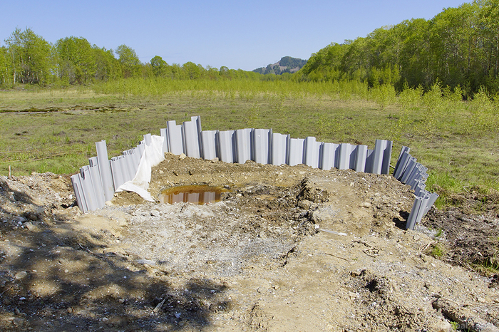 Затем шлам-лигнин был перемешан с покрывавшей его землей и растительностью, золой, флоакулянтами, мраморным и обычным щебнем, известью. По задумке разработчиков в результате перемешивания должен был получиться монолит, который бы затвердел в течение нескольких часов и который через 7 дней можно было бы засыпать рекультивирующим слоем почвы.