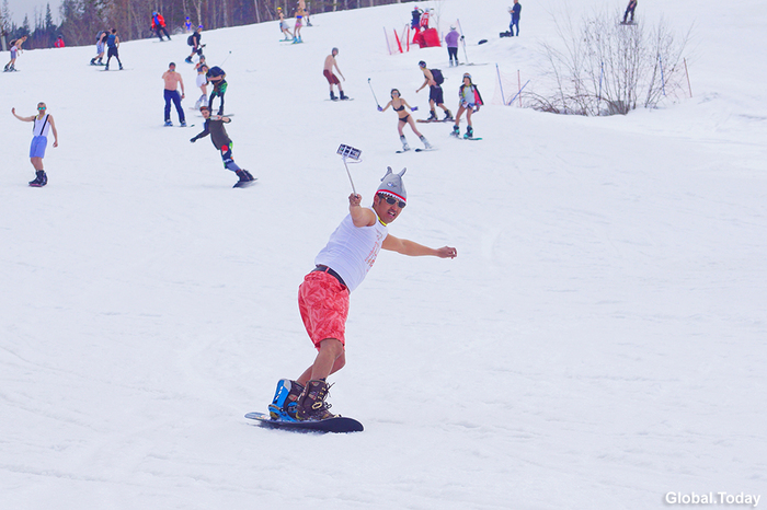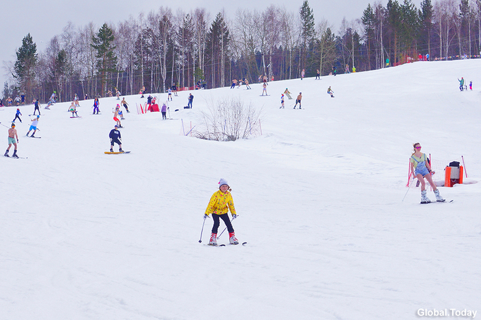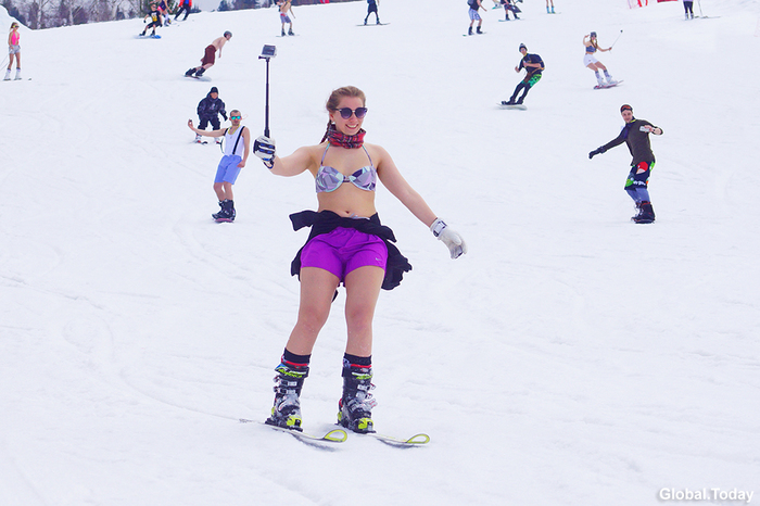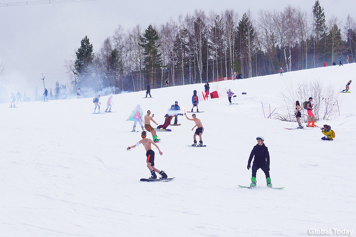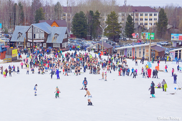 22 апреля на курорте "Гора Соболиная" в г. Байкальска прошел традиционный спуск в бикини. В мероприятии приняло участие чуть более 200 парней и девушек.