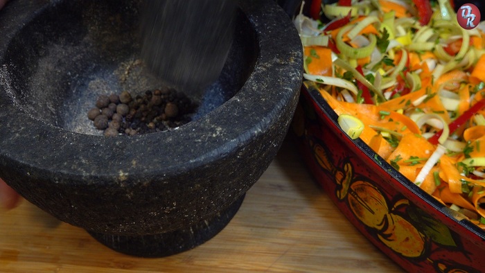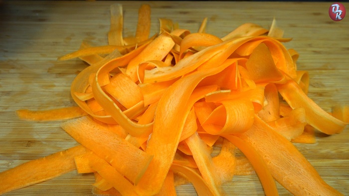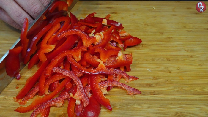 Перец, морковь и огурец нарезаем мелкой соломкой.