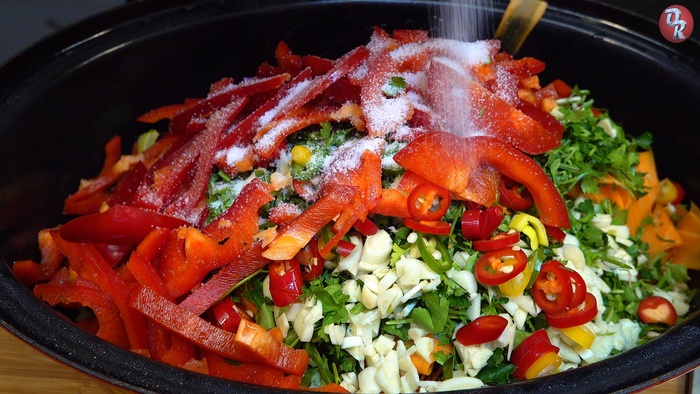 Не лишним будет отправить салат в холодильник хотя бы на 1 час. так как в холодном виде он гораздо вкуснее.
