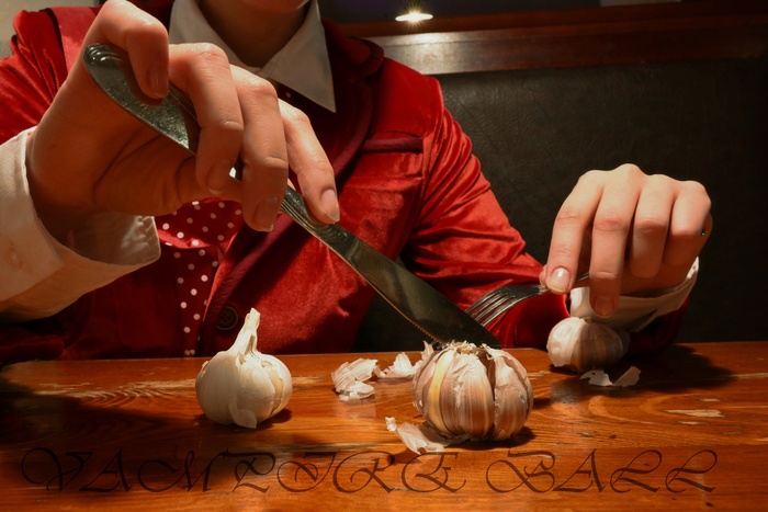 Альфред из "Бала вампиров" готовится спасать возлюбленную от вампира. В главной роли господин чеснок.