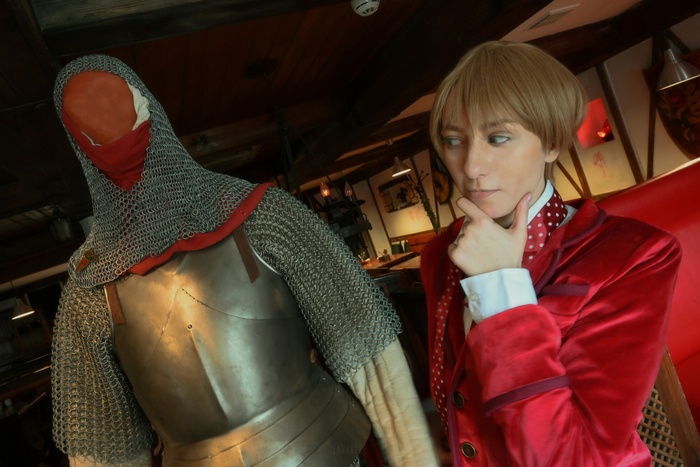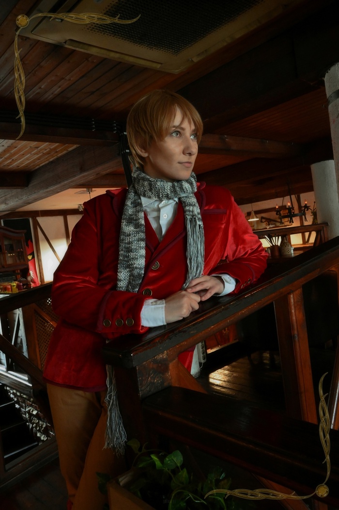 Вряд ли Герберт сильно младше папы (одет по последнему писку моды середины-конца семнадцатого), ну ок, может ему не 300, но 200 лет наверное уж есть. Но по нему не скажешь. В отличие от папы, он совершенно не потерял вкус к жизни. Зато здравого скептицизма у него хоть отбавляй. Они с отцом разные, как огонь и лёд - и по темпераменту, и по стремлению преисполниться в познании, причём во втором случае они меняются ролями. Цвета их одежды в российской версии - тоже огонь и лёд (цветовой контраст дополняется смысловым). И распределение цветов тут не про темперамент. Про стремления.