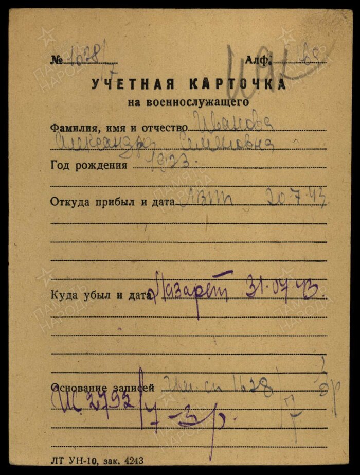 Александра Семеновна родилась в многодетной семье на железнодорожной станции в Пензенской области. Окончила фельдшерско-акушерскую школу и работала акушеркой. В 1943 году Александра была призвана в состав прифронтового сортировочного эвакогоспиталя, который передвигался вслед за линией Первого Украинского фронта.