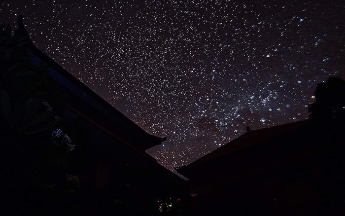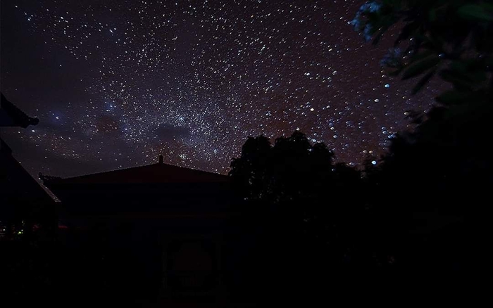 Наступила ночь. На острове не включился ни один фонарь. Кромешная темнота. И ниже, я прикреплю фотографии ночного неба, которые получилось сделать у ребят на фототехнику.
