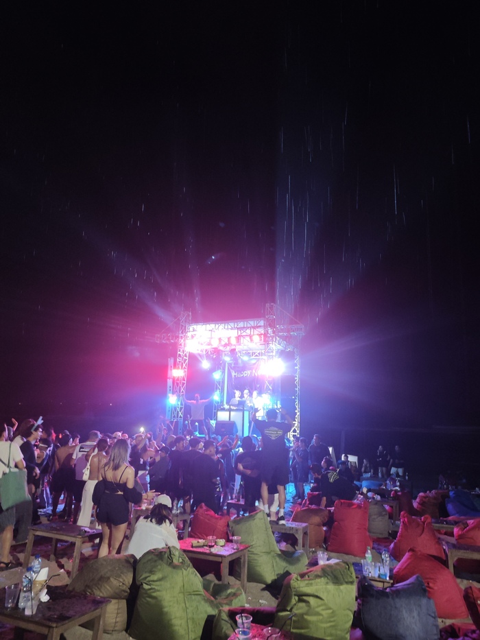 По всему побережью шквал фейерверков. Часть фейерверков взрывается на земле, часть летит не вверх а в стороны. Где то к северу на пляже было лазерное шоу, а у нас только масса стихийных запусков. Разливаю шампанское и прикрываю стаканчики рукой. С неба сыпется пепел. Отправляем поздравления родным. Небольшая фотосессия на освещаемом разными цветами пляже.