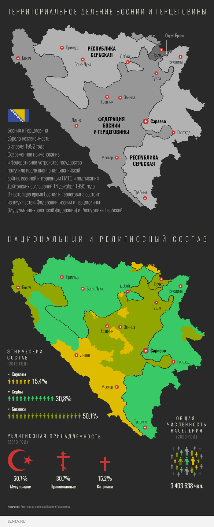 В январе 1992 года боснийские сербы сделали первый шаг на пути к собственной государственности, провозгласив создание Республики Сербской в составе Боснии и Герцеговины (БиГ). На территории этого балканского государства когда-то проживал единый славянский народ, расколовшийся с течением времени по религиозному признаку на православных сербов, отуреченных босняков-мусульман и хорватов-католиков. В годы гражданской войны на этих территориях бывшей Югославии сформировался союз хорватов и босняков, воюющих против сербов. В итоге образовались Республика Сербская и Мусульмано-Хорватская федерация, объединенные в составе Боснии и Герцеговины. Обе части нового государства были нарезаны более-менее по этническим границам, имеют собственную конституцию, своего президента, правительство, парламент, суды и полицию — то есть фактически являются суверенными державами. При этом в каждой из них есть недовольные существующим положением дел: среди сербов и хорватов хватает тех, кто желает воссоединиться с единоплеменниками, то есть с Сербией и Хорватией, а босняки-мусульмане пытаются построить суверенную исламскую демократию.